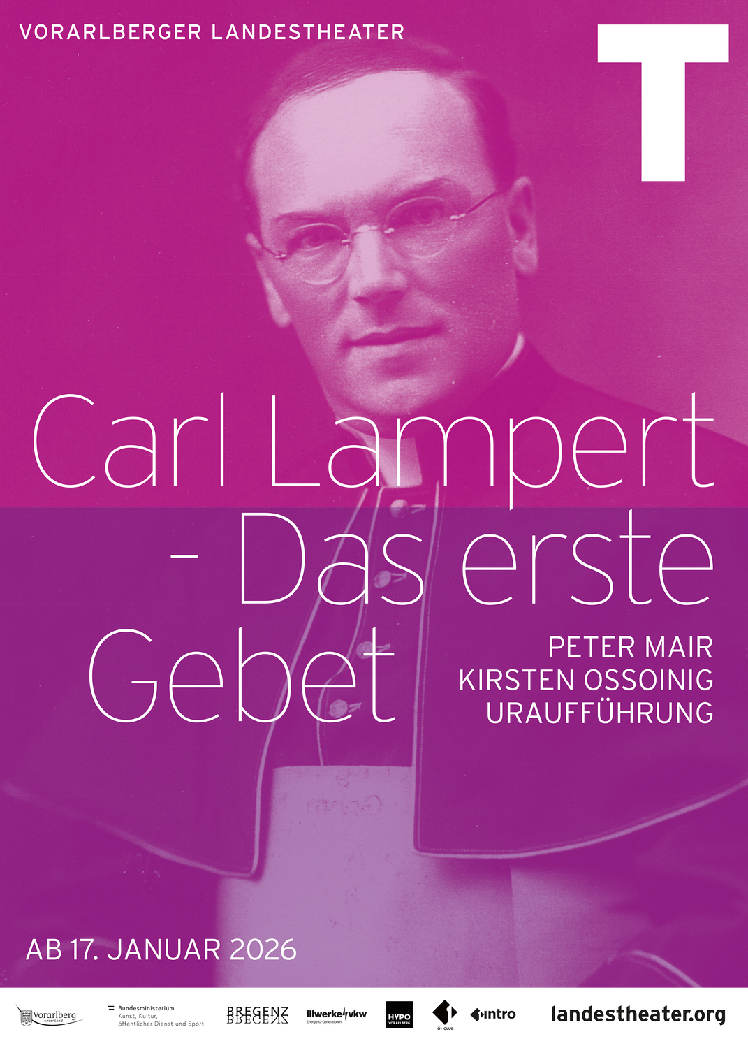Das Vorarlberger Landestheater widmet seine Aufmerksamkeit auch in dieser Spielzeit einer herausragenden Persönlichkeit der jüngeren Vorarlberger Geschichte – mit einem Stück über den seligen Carl Lampert. Dieses Theaterstück verknüpft in dessen Erzählstruktur drei Leben im Gestern und Heute auf schicksalhafte Weise: