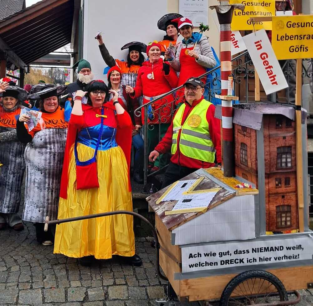 Als Müllzwerge verkleidet zogen sie einen selbstgebauten Wagen mit einer Rauch qualmenden Müllverbrennungsanlage ringsum. "Als Eigentümer einer solchen gewinnbringenden Anlage müssen die Zwergen nicht mehr im Steinbruch arbeiten", verkündete der Sprecher des Faschingsumzuges.
