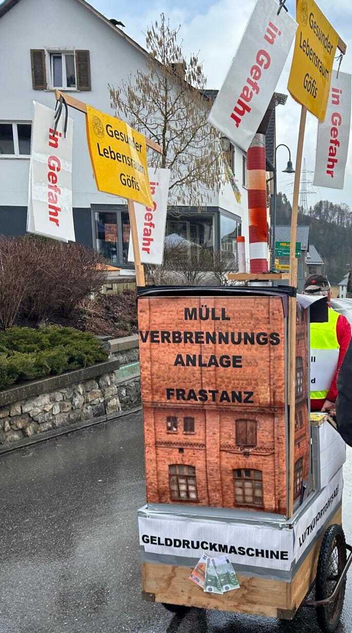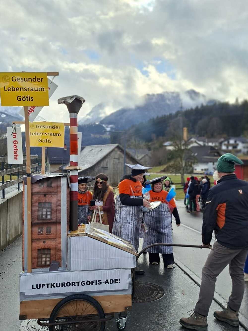 Die Müllzwerge wurden von Mülltonnen begleitet, die bunt gemischt sich aus Mitgliedern der Pfarre Göfis, der Gemeindevertretung Göfis, der Grünen und Parteifreien Göfis und Frastanz und des Vereins S.O.S Walgau - keine Abfallverbrennungsanlage im Walgau zusammenstellten. Die Aktion wurde vom Gesunden Lebensraum organisiert, die aufgrund der aktuell geplanten Abfallverbrennungsanlage der Rondo Ganahl in Frastanz den gesunden Lebensraum in Gefahr sehen.