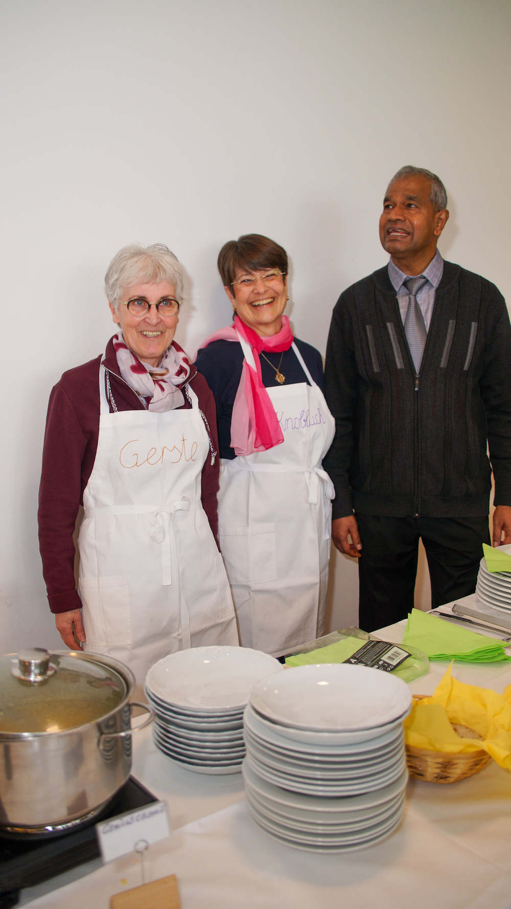 Musik ist das eine, Essen das andere. Wer noch keinen z’Morga hatte, konnte diesen mit hausgemachtem Zopf, Butter und Marmelade nachholen. Deftigeres gab es dann mit einer Auswahl an Suppen aus Göfner Küchen und erstmals mit original indischen Burgern nach der Rezeptur und unter Mitarbeit von Pfarrer Georg. Die Herstellung war laut Berichten sehr aufwendig, das Ergebnis fand aber großen Gefallen.