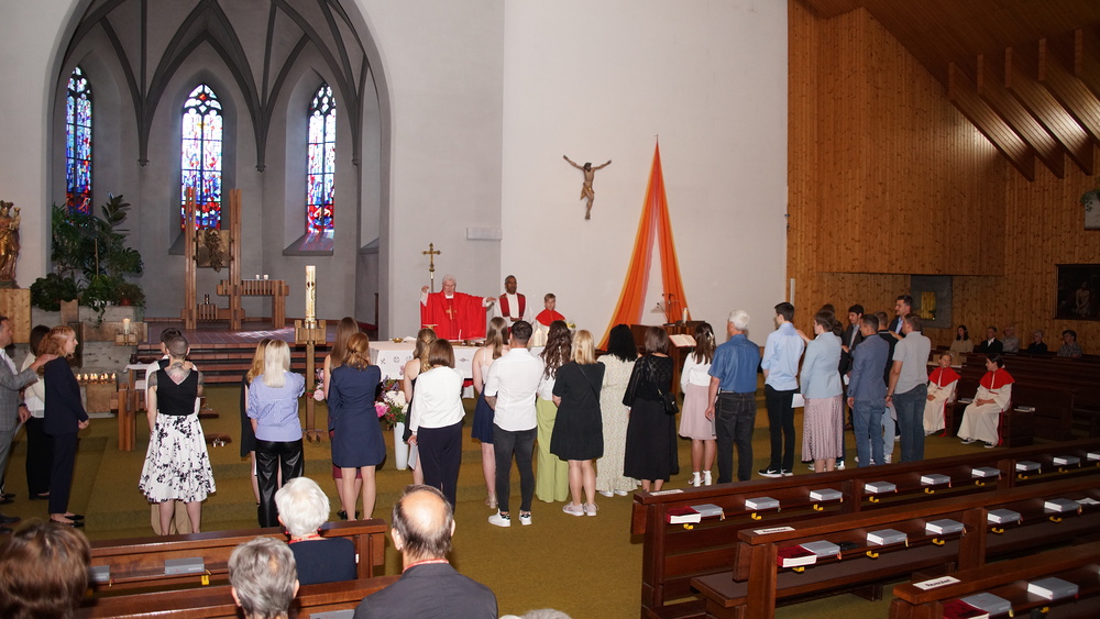 Nach längerer Vorbereitungszeit teilten sie uns das nun in der Firmungsfeier mit Bischofsvikar Rudolf Bischof mit. Unterstützt wurden sie dabei von den Paten, die ihnen als sichtbares Zeichen während der Sakramentspendung die Hand auf die Schulter legten.