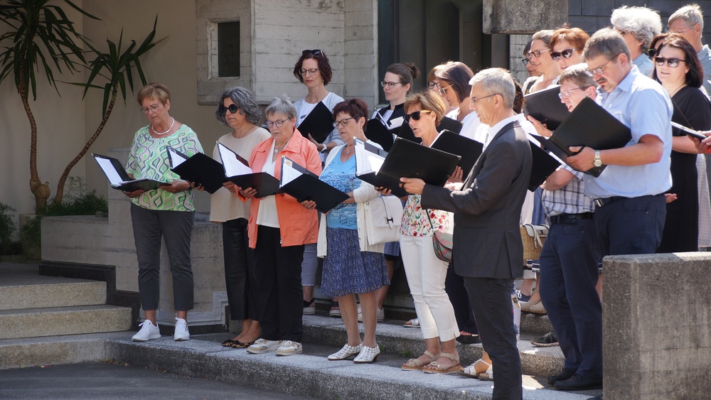 Nach dem Schluss-Segen bei der Kirche lud der Kirchenchor zu seinem nun schon traditionellen Frühschoppen auf der Pfarrwiese ein.