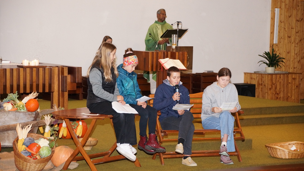 Kritische und nachdenkliche Texte brachten als Teil der Predigt Magdalena Lampert, Carla Loretz, Clara Fersterer und Sarah Valentini zu Gehör.