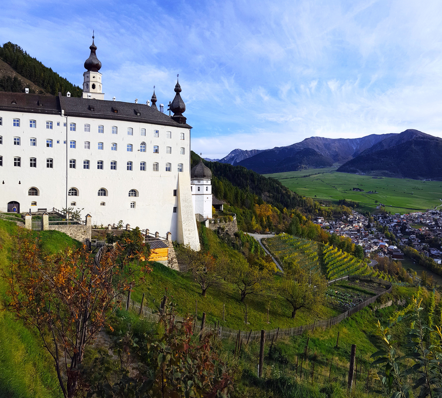 Das Benediktinerstift Marienberg oberhalb von Burgeis, Teil der Gemeinde Mals im Vintschgau, ist unser diesjähriges Wallfahrtsziel. Wer über den Reschenpass fährt, blickt unweigerlich auf den weißen festungsartigen Bau mit seinen 365 Fenstern. Es erwartet uns ein Ort der Ruhe und der Kraft, des Staunens und des Glaubens.