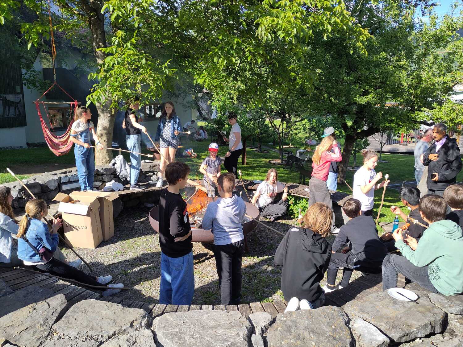 Anschließend bereiteten wir gemeinsam das Essen vor und trafen uns vor der großen Grillschale im Bugogarten. Im gemütlichen Beisammensein schmeckt alles natürlich viel besser. Gemeinsam hatten wir auch schnell alles wieder aufgeräumt und wärmten uns an der Feuerschale. Zum Abschluss durften Marshmallows natürlich nicht fehlen, und zusammen versuchten wir, die Rätsel der „Black Stories“ zu lösen.