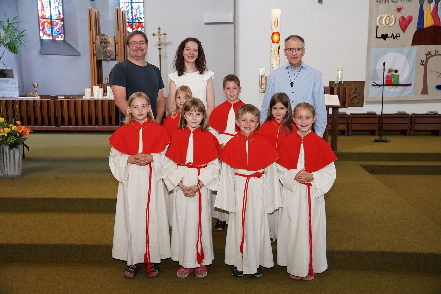 Wir sind froh, dass wir wieder neue Ministranten haben! Drei Kinder konnten wir nach der Erstkommunion und vier Kinder aus der 3. Klasse dafür gewinnen. In einigen Ministrantenstunden lernten sie den Ablauf der Messe und ihre Dienste beim Altar kennen.