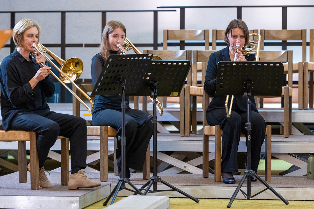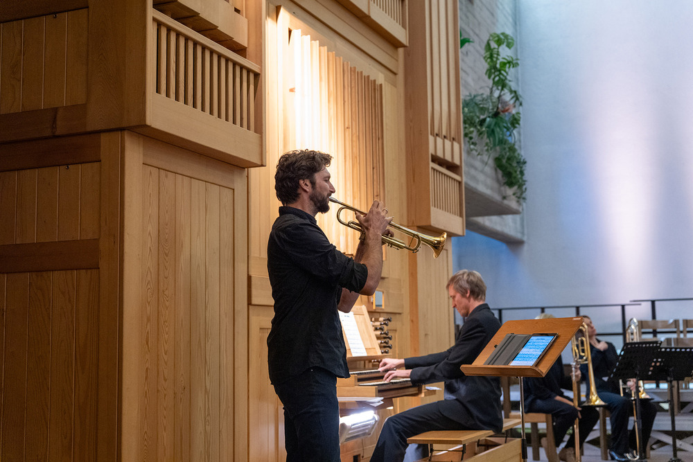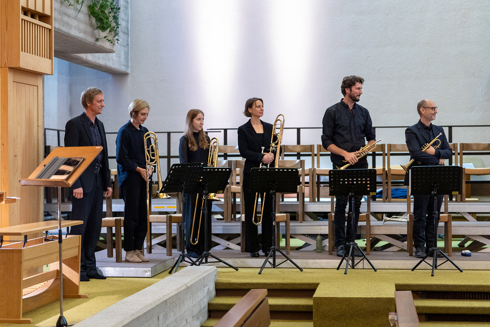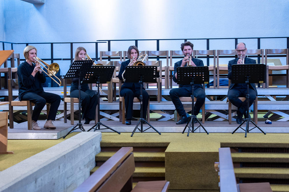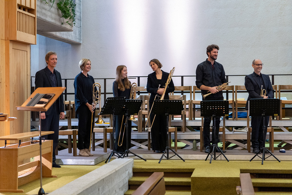 Das Jubiläumskonzert wurde mit dem „Feierlichen Einzug der Ritter des Johanniter-Ordens“ von Richard Strauss festlich durch das Bläserquintett von der Orgel begleitet eröffnet. Es folgte der „Göfner 4-Xang“ mit „Domine pacem da nobis“ von Jakob Christ. Die Ouvertüre aus der Suite in C-Dur von Georg Friedrich Händel, meisterhaft gespielt von Bernhard Lampert, begleitet von Philipp Sonderegger an der Orgel, war schon der nächste Höhepunkt des Abends. Martin Loretz spielte an der Orgel eine Toccatina in G-Dur sowie eine äußerst begeisternde Carl-Lampert-Improvisation.