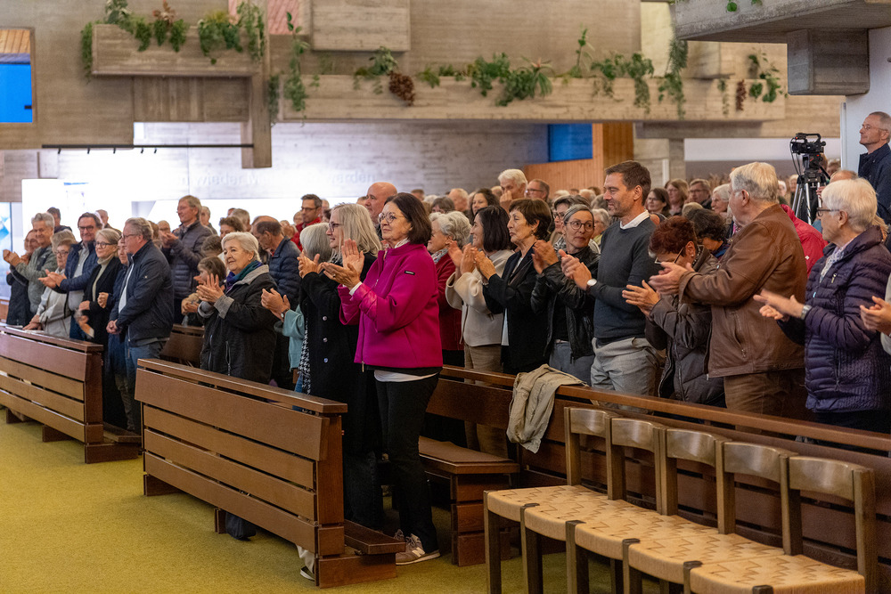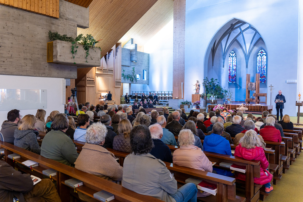 Der „Göfner 4-Xang“ ließ als Höhepunkt das Carl-Lampert-Lied dreistimmig erklingen. Für außergewöhnliche musikalische Akzente sorgten Christian Sonderegger an der Trompete und Philipp Sonderegger an der Orgel mit „It’s on“ von George Duke, bei dem die Kirchenorgel auch Blues spielte. Das Bläserquintett ließ mit Chris Hazells Halleluja Drive ebenso Jazztöne erklingen. Ganz besonders wurden Christian und Philipp Sonderegger für Oscar Petersons „Hymn to Freedom“ gefeiert, welche die Freiheitshymne der kanadischen Jazzlegende auf geniale Art umsetzten. Mit einem feierlichen „Amazing Grace“ schlossen Bläserquintett und Orgel das gelungene Jubiläumskonzert für den frisch renovierten Kirchturm ab. Das mit langen Beifallsstürmen bedachte Konzert moderierte Richard Sonderegger. Auch Göfis’ Pfarrer Georg Thaniyath Varghese sowie Alt-Pfarrer Elmar Simma wohnten dem besonderen Konzert bei.