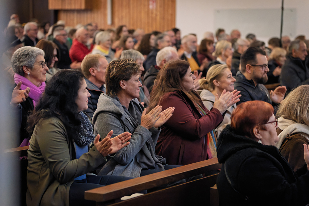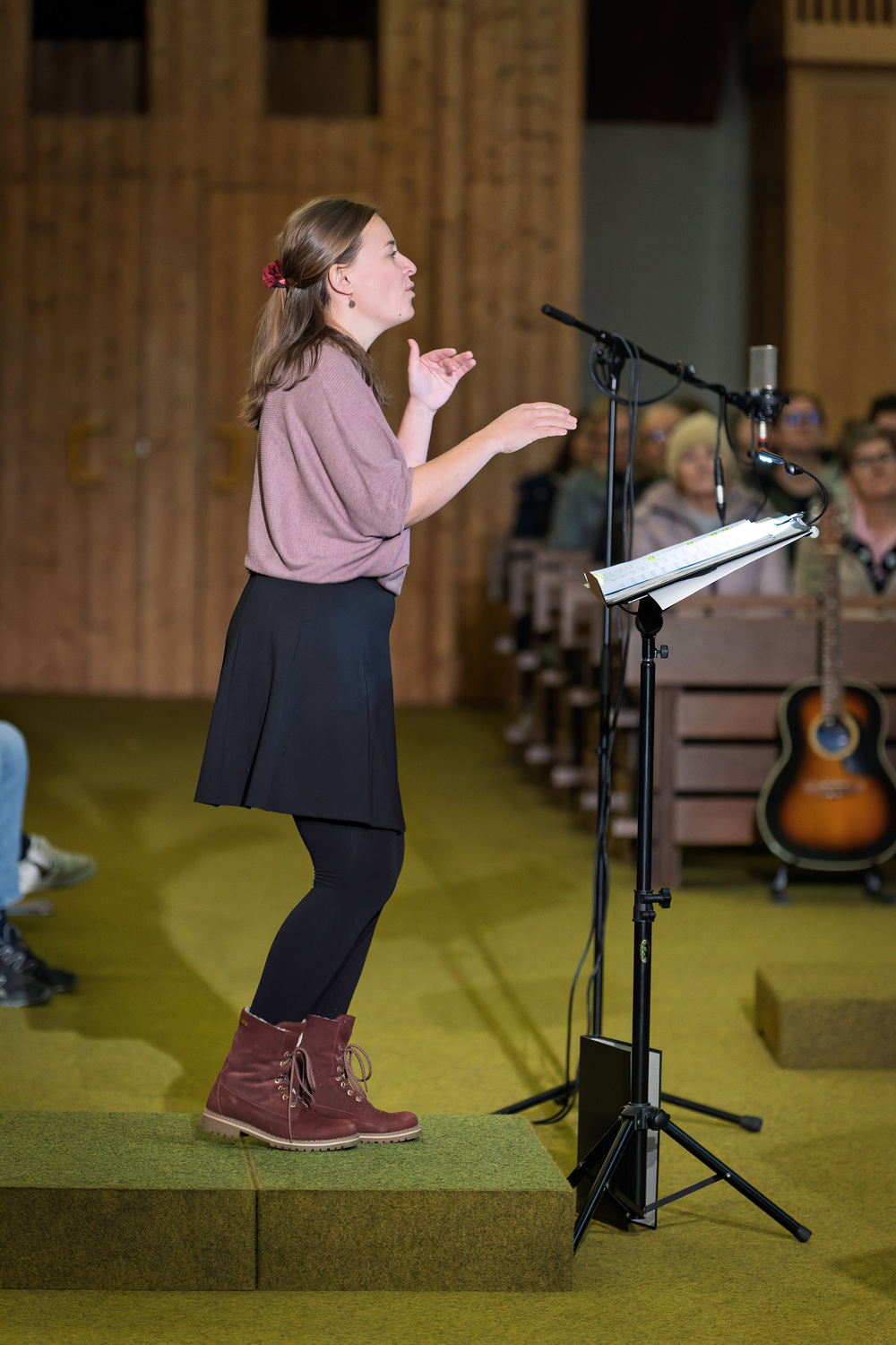 Das Interesse war groß, schon lange war die Göfner Kirche nicht mehr so voll besetzt und bei diesem Anblick kam bei dem ein oder anderen Chormitglied, samt Chorleiterin, dann doch noch ein bisschen Nervosität auf. Sobald die ersten Töne erklungen, die ersten Lieder gesungen und die Begrüßungsworte gesprochen waren, löste sich die Anspannung langsam und wir begannen zu genießen.