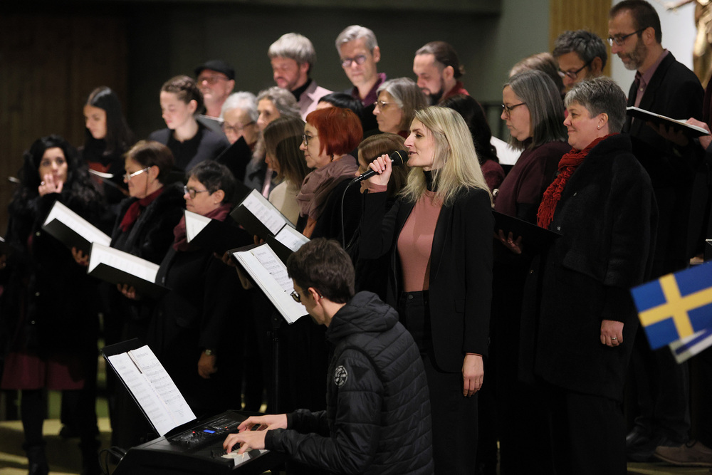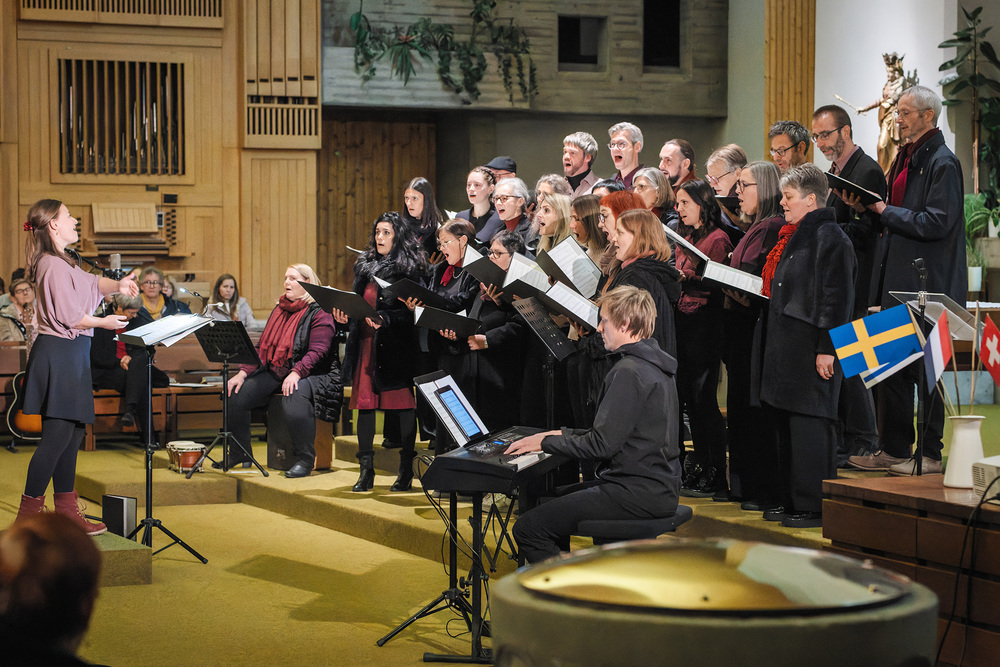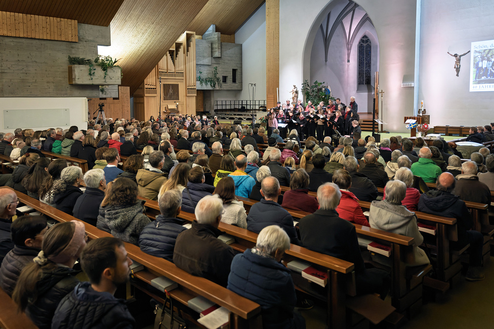 Im Programm wurde auch mit Bildern und Erzählungen auf die letzten 40 Jahre des Chores zurückgeblickt, die frühere Chorleiterin Barbara Nägele und Chorleiter Elmar Natter dirigierten jeweils ein Lied, Philipp Sonderegger und Michael Ess begleiteten uns professionell und mit viel Swing am Piano.