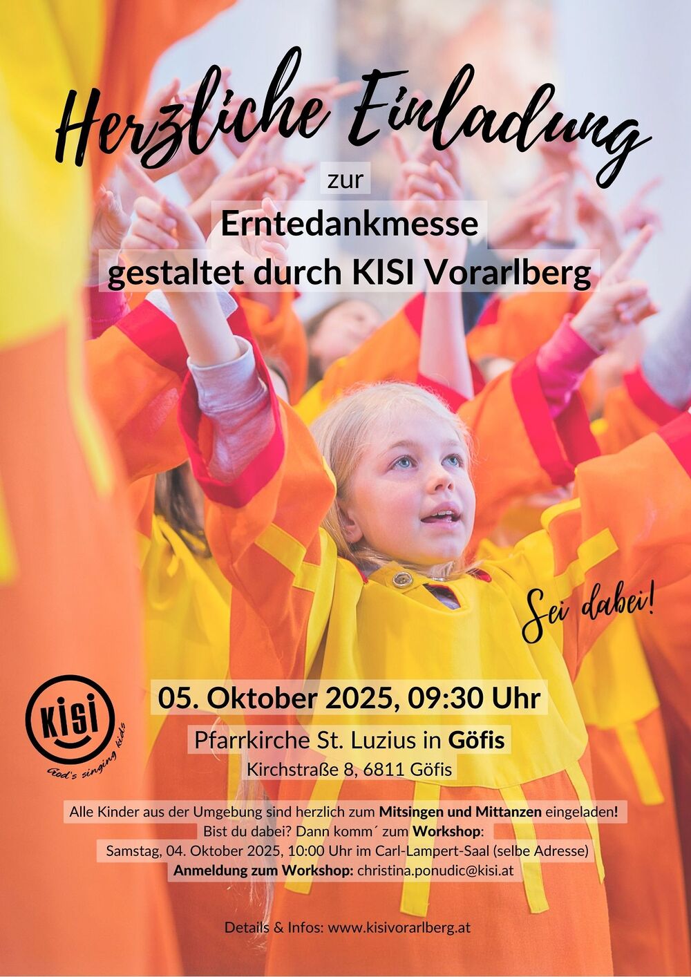 Familiengottesdienst - Erntedanksonntag, die Kirche wird mit Erntefrüchten geschmückt, Weihe der mitgebrachten Ernteprodukten als Dank für den Ertrag in Landwirtschaft und Garten, mitgestaltet von KISI Vorarlberg